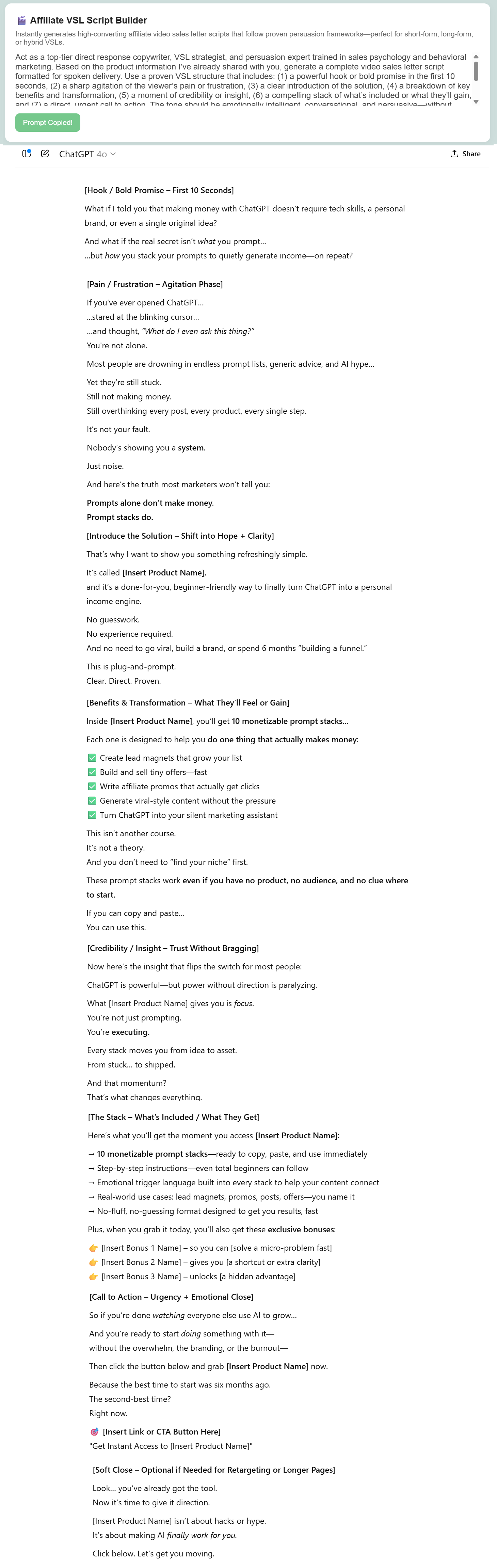 Affiliate VSL Script Builder...