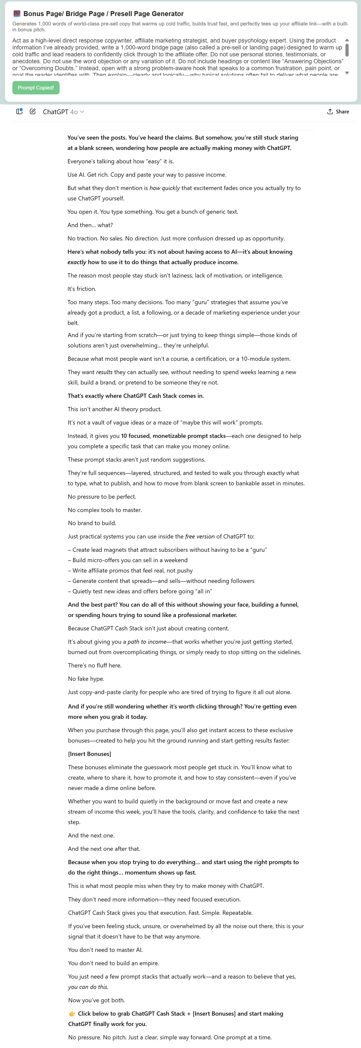Bonus/Bridge/Presell/Landing Page Copy Generator...