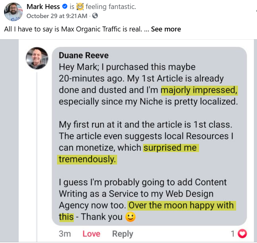 Getting your hands on Max Organic Traffic is the smartest move you can make today.