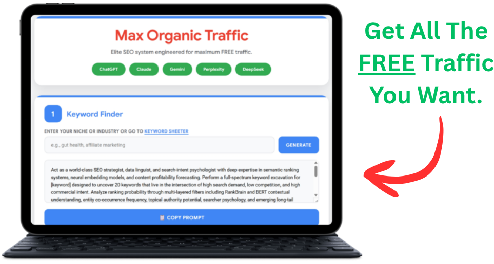 This is a real, free organic traffic method that works because we took proven ranking logic signals Google uses then baked them into prompts you can use with ChatGPT, Gemini, Claude, Perplexity, or DeepSeek.