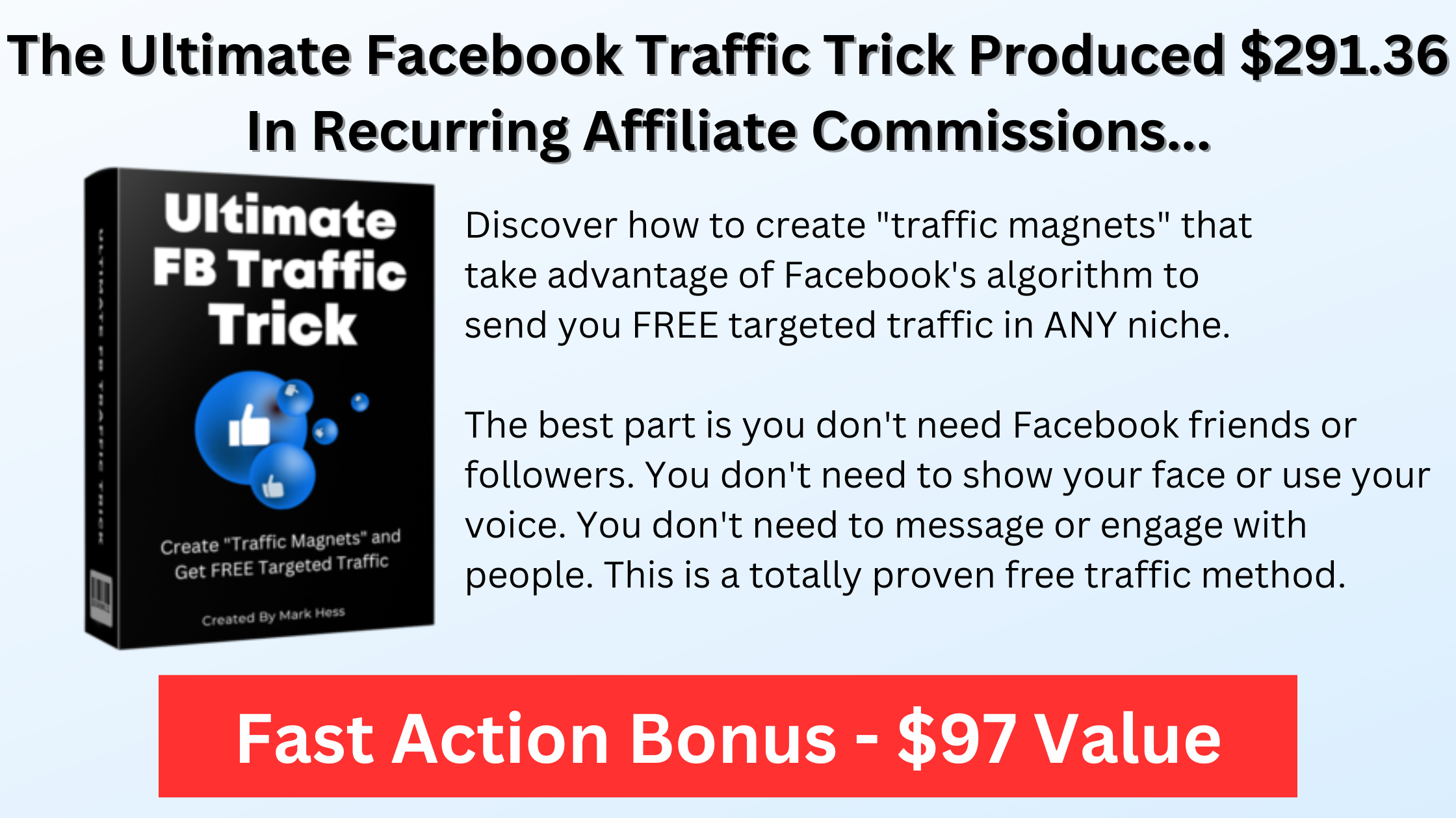 My Ultimate FB Traffic Trick was released in February 2023 and sold over 500+ copies with awesome reviews.