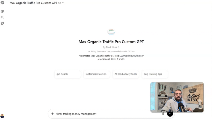 Good News! This has all of the goodness (and then some) of Max Organic Traffic baked into a custom GPT so there's no copy & pasting prompts.