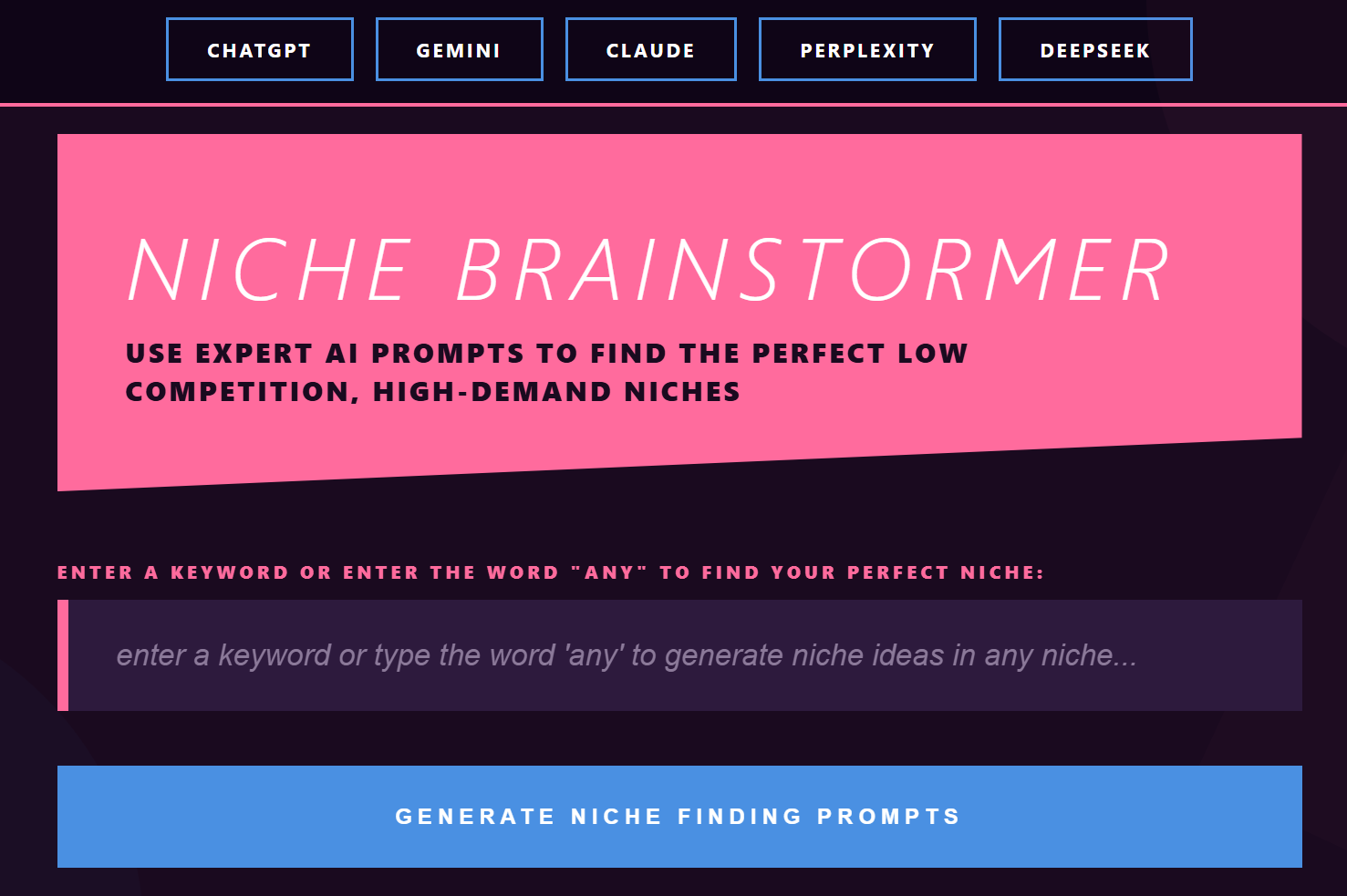 If you can’t find a niche using Niche Brainstormer, it’s not happening.
